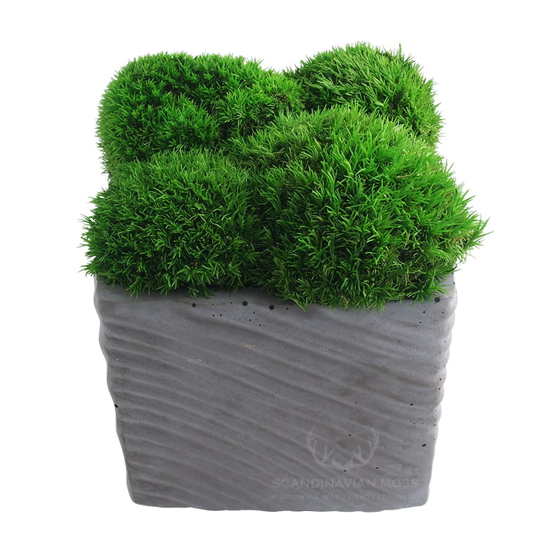 Mech w doniczce został trwale zaimpregnowany przez stabilizację, dlatego nie wymaga pielęgnacji. W związku z tym stanowi świetną alternatywę dla klasycznych roślin doniczkowych. Nie trzeba go podlewać ani przycinać. Mech stabilizowany nie więdnie, a jego kolor nie traci intensywności. Zachowuje swój wygląd i strukturę nawet do 15 lat.