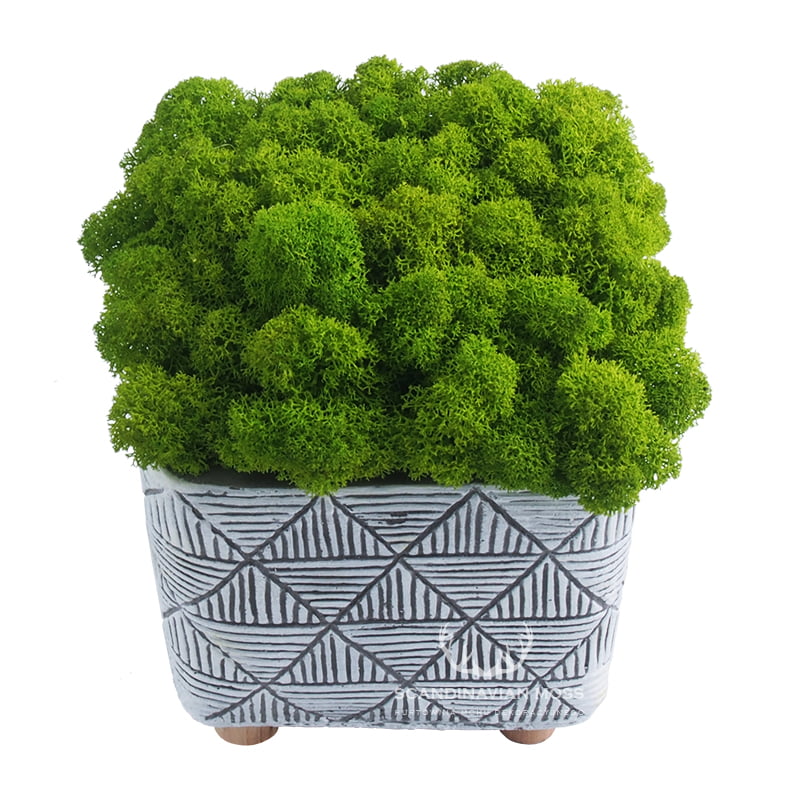 Kompozycja w doniczce z oryginalnego chrobotka w kolorze jasnej, energetycznej zieleni. Doskonały dodatek do wnętrza w stylu nowoczesnym, skandynawskim i boho. Donica z mchem chrobotkiem to minimalistyczna, a jednocześnie stylowa ozdoba, która wprowadzi odrobinę zieleni do każdego mieszkania lub biura.