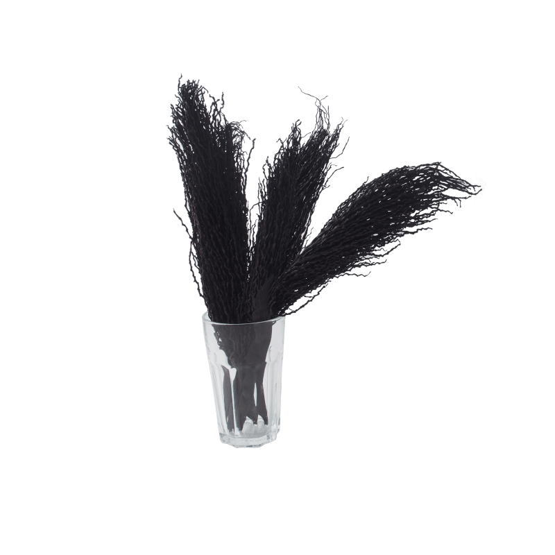 Czarne gałązki palmy daktylowej można rozpoznać po niestandardowym kształcie. Grube, sztywne gałązki zakończone są długimi „włosami” przypominającymi miotełkę. Susz dekoracyjny posiada intensywny, czarny kolor.  Khejur świetnie pasuje do innych kwiatów suszonych oraz roślin stabilizowanych dostępnych w sklepie Scandinavian Moss.