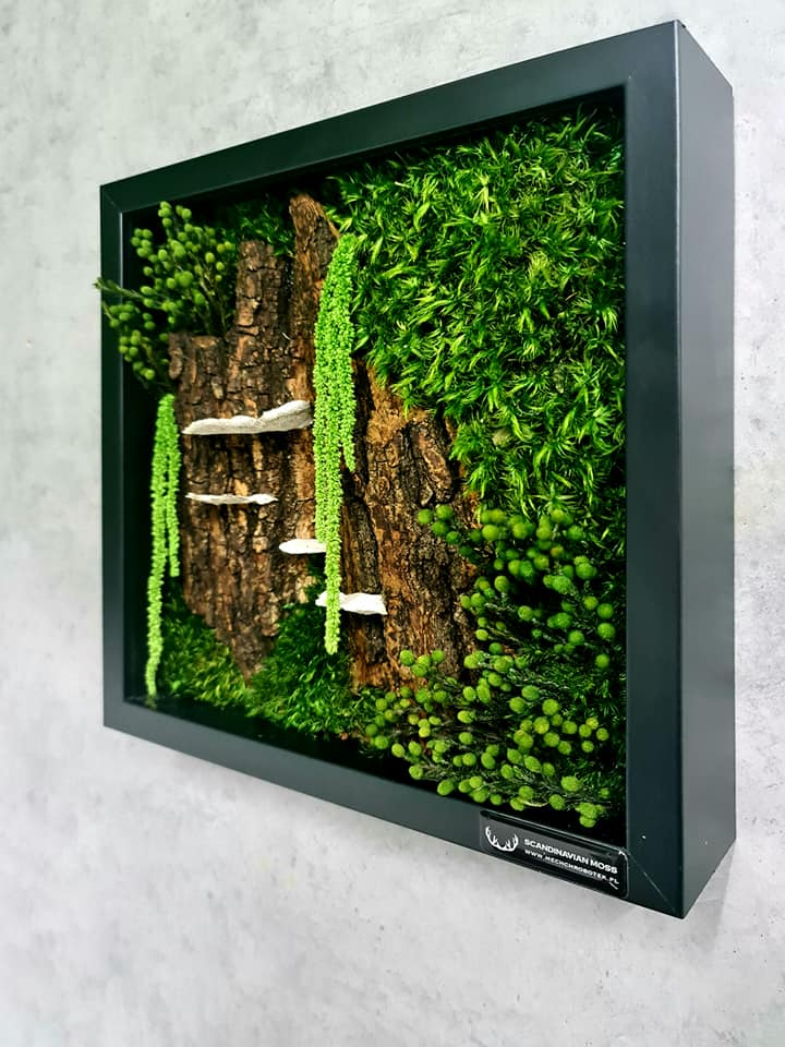 Obraz z mchu poduszkowego i płaskiego 50x50cm w ramie drewnianej czarnej