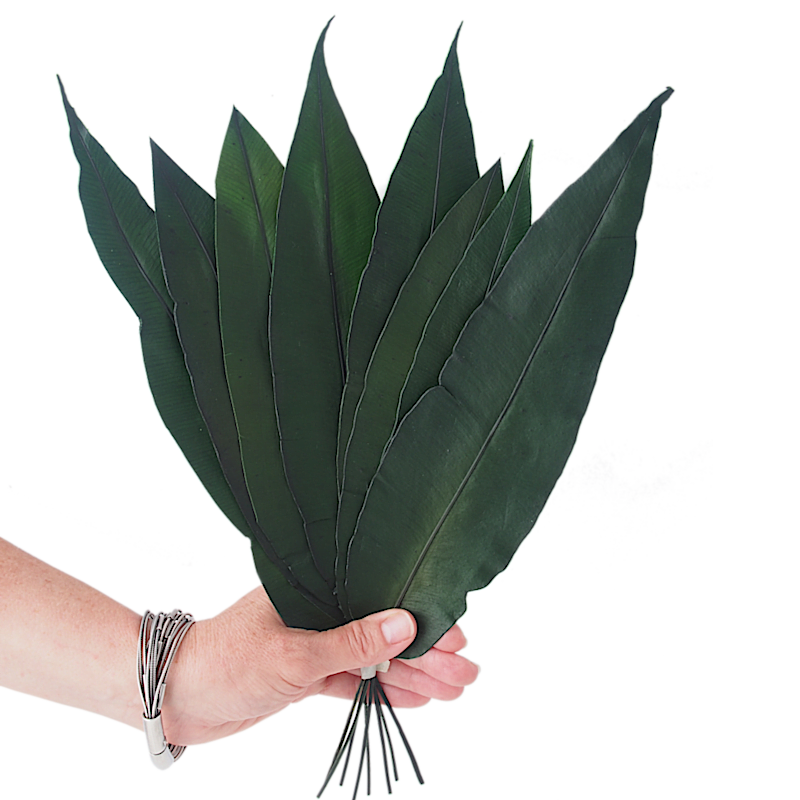 Stabilizowane liście tropikalne to nowoczesny dekor w 100% naturalnego pochodzenia. Stanowią długowieczny, efektowny dodatek do wnętrza w stylu nowoczesnym, rustykalnym czy boho. Zielone, ostro zakończone liście o wydłużonym kształcie można wykorzystać w rozmaitych ozdobach i kompozycjach florystycznych.