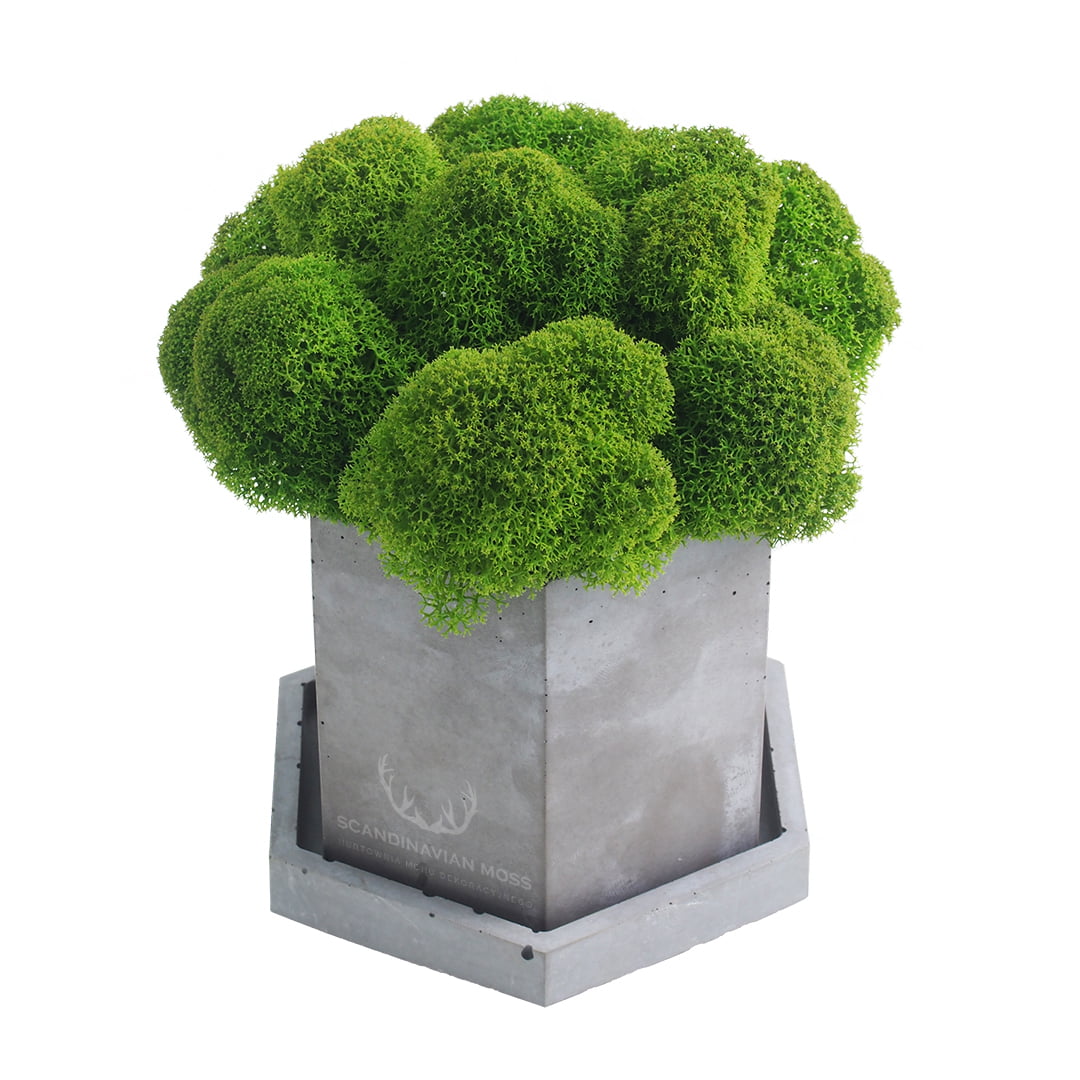 Chrobotek jasnozielony w doniczce betonowej sześciennej