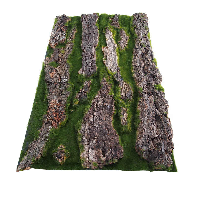 Prostokątna mata ze sztucznej kory i mchu o wymiarach ok. 30×50 centymetrów.