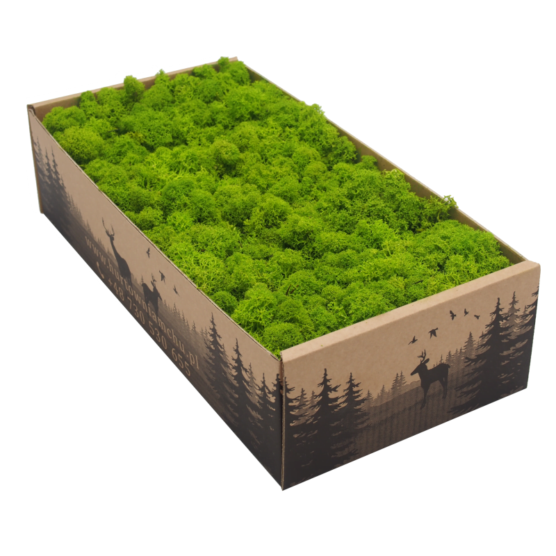 Chrobotek reniferowy (reindeer moss) jest stabilizowany w glicerynie, co odpowiada za jego długowieczność. W dotyku i wyglądem przypomina żywą roślinę. Stabilizowana zieleń nie wymaga pielęgnacji, tworząc tym samym długowieczną, w 100% naturalną ozdobę wnętrza.