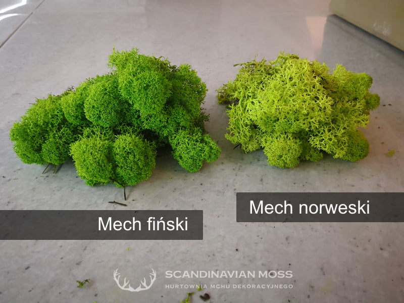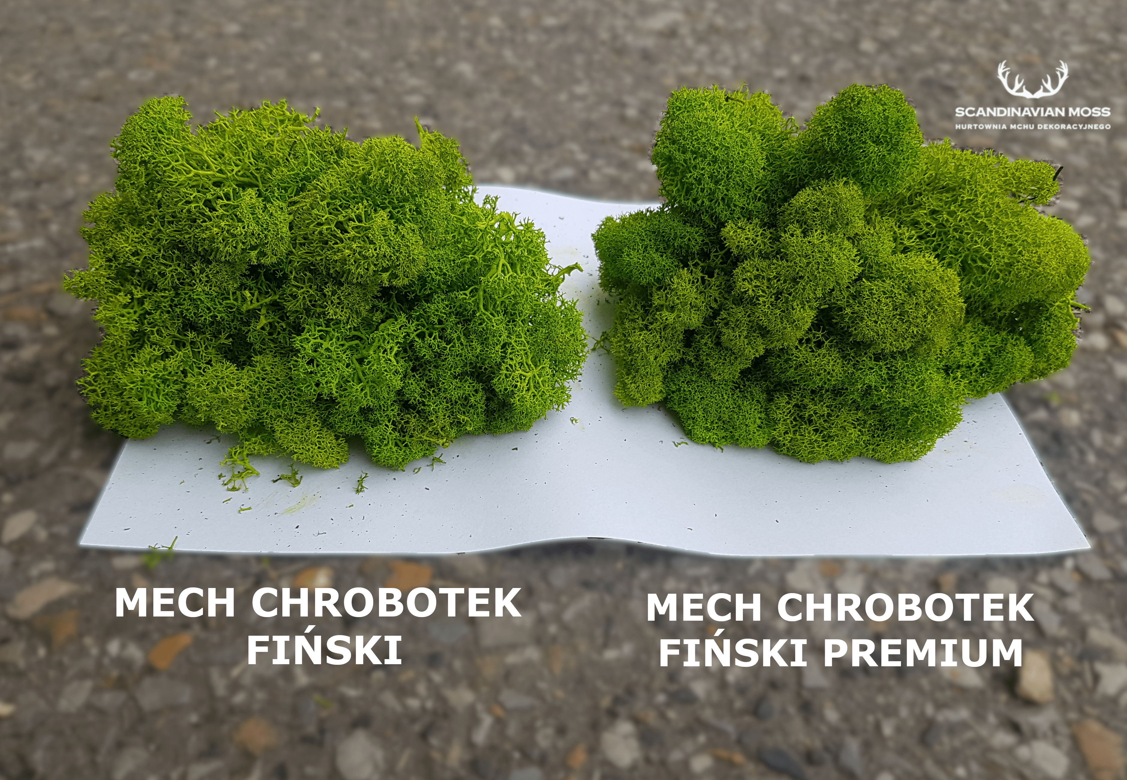 Chrobotek fiński 2 gatunek ma mniejsze głowy, krótsze kępki oraz mniej rozłożystą strukturę w porównaniu z mchem fińskim premium.