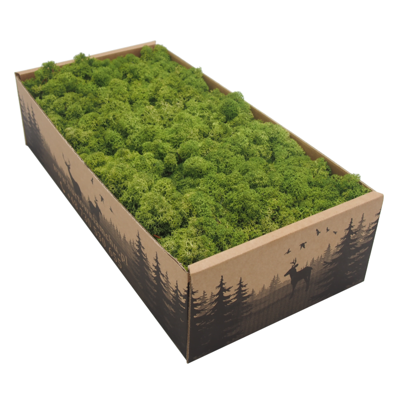 Stabilizowany chrobotek w kolorze naturalnym średniozielonym (medium green) pochodzący z terenów Norwegii. To produkt nieoczyszczony, co oznacza, że znajduje się w nim igliwie oraz pozostałości leśnej ściółki. Za jego pomocą możesz tworzyć zielone ściany z mchu, obrazy roślinne i inne kompozycje florystyczne. Mech stabilizowany przez wiele lat zachowuje swój pierwotny kolor i strukturę. W 100% naturalnego pochodzenia. Materiał dekoratorski o wysokości od 8 do 12 cm, pakowany warstwowo. Pojedynczy karton 5 kg wystarcza na pokrycie ok. 0,7 m².
