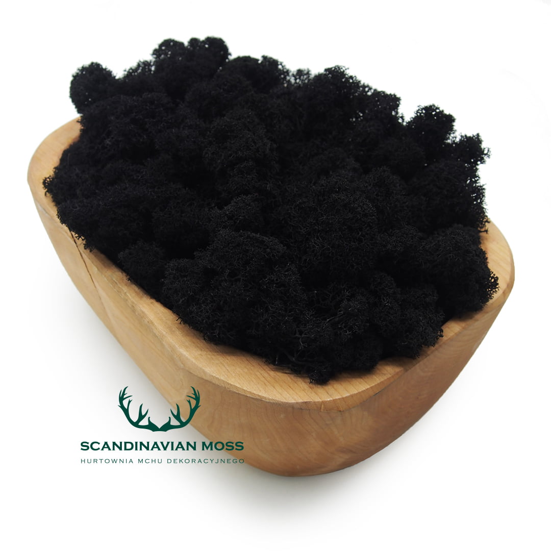 Chrobotek w kolorze czarnym (black) posiada intensywne, trwałe zabarwienie. Sprawdzi się przy rozmaitych dekoracjach i kompozycjach florystycznych jako niestandardowy akcent kolorystyczny.