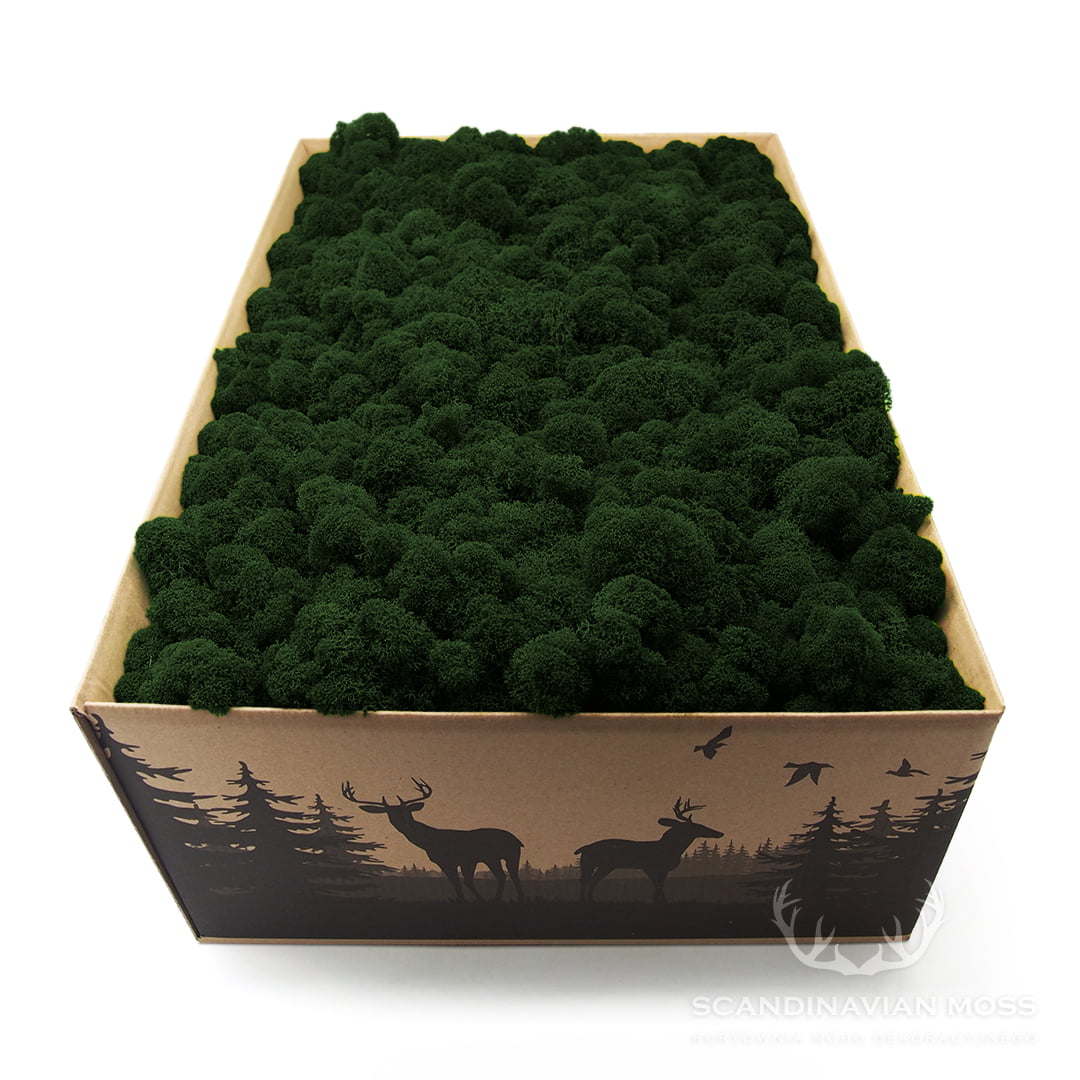 Stabilizowany mech chrobotek ciemnozielony (dark green) pochodzący z leśnych terenów Finlandii. To produkt oczyszczony, co oznacza, że znajdują się w nim śladowe ilości igliwia. Za jego pomocą możesz tworzyć zielone ściany z mchu, obrazy roślinne i inne kompozycje florystyczne. Stabilizowany chrobotek fiński przez wiele lat zachowuje swój pierwotny kolor i strukturę. W 100% naturalnego pochodzenia. Materiał dekoratorski o wysokości od 4 do 8 cm, pakowany luzem. Pojedynczy karton 4 kg wystarcza na pokrycie ok. 0,7 m².