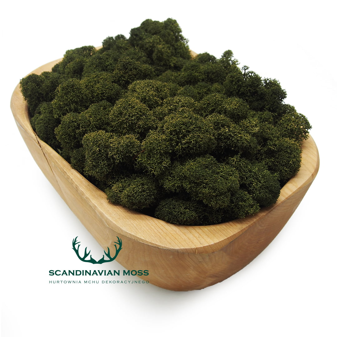 Mech jest produktem barwionym, pochodzenia naturalnego. W zależności od dostawy mech może różnić się nieznacznie kolorem oraz kształtem główek od prezentowanego na zdjęciu. Mech z najnowszej dostawy prezentujemy dla Państwa na zdjęciu w drewniej miseczce.