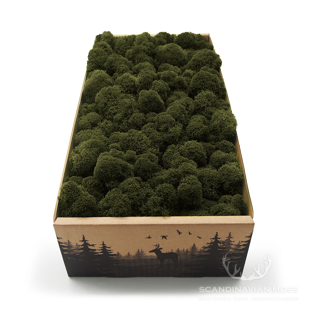 Stabilizowany chrobotek khaki pochodzący z leśnych terenów Finlandii. To mech oczyszczony, co oznacza, że znajdują się w nim śladowe ilości igliwia. Za jego pomocą możesz tworzyć zielone ściany z mchu, obrazy roślinne i inne kompozycje florystyczne. Stabilizowany chrobotek reniferowy fiński przez wiele lat zachowuje swój pierwotny kolor i strukturę. W 100% naturalnego pochodzenia. Materiał dekoratorski o wysokości od 4 do 8 cm, pakowany luzem. Pojedynczy karton 500 g wystarcza na pokrycie powierzchni około 35 x 30 cm.