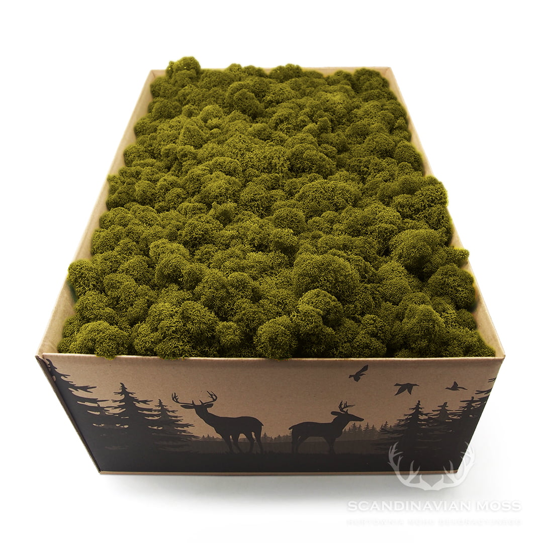 Mech chrobotek reniferowy w kolorze limonkowym (lime) pochodzący z leśnych terenów Finlandii. To produkt oczyszczony, co oznacza, że znajdują się w nim śladowe ilości igliwia. Za jego pomocą możesz tworzyć zielone ściany z mchu, obrazy roślinne i inne kompozycje florystyczne. Stabilizowany chrobotek przez wiele lat zachowuje swój pierwotny kolor i strukturę. W 100% naturalnego pochodzenia. Materiał dekoratorski o wysokości od 4 do 8 cm, pakowany luzem. Pojedynczy karton 4 kg wystarcza na pokrycie ok. 0,7 m².