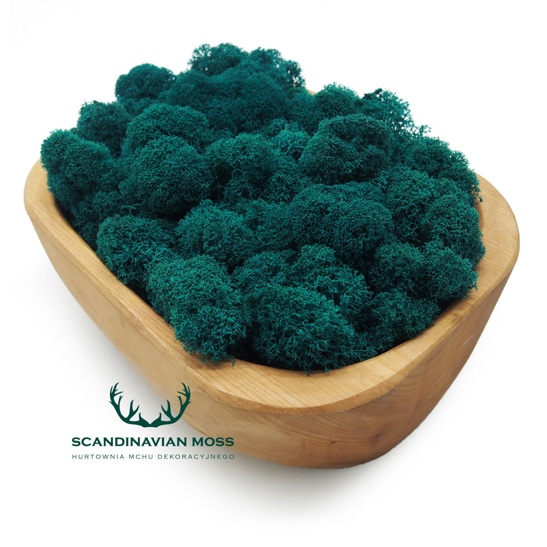 Preparowany naturalny chrobotek w kolorze morskim (marine) pochodzący z leśnych terenów Finlandii. To mech oczyszczony, co oznacza, że znajdują się w nim śladowe ilości igliwia. Za jego pomocą możesz tworzyć zielone ściany z mchu, obrazy roślinne i inne kompozycje florystyczne. Mech chrobotek stabilizowany przez wiele lat zachowuje swój pierwotny kolor i strukturę. W 100% naturalnego pochodzenia. Materiał dekoratorski o wysokości od 4 do 8 cm, pakowany luzem. Pojedynczy karton 500 g wystarcza na pokrycie powierzchni około 35 x 30 cm.