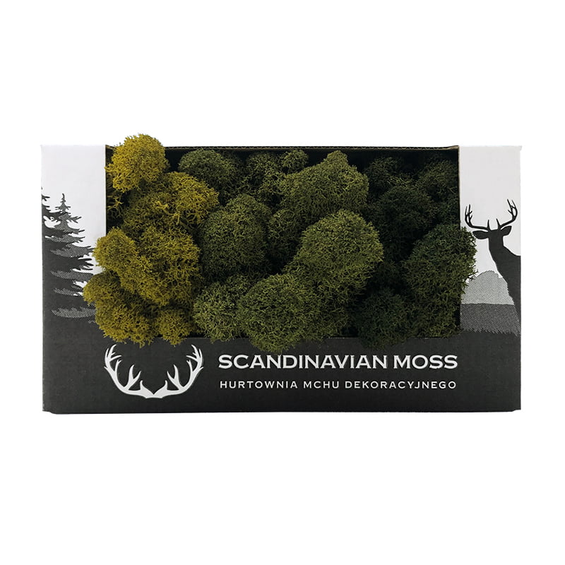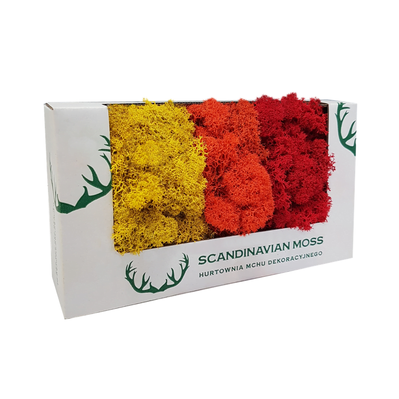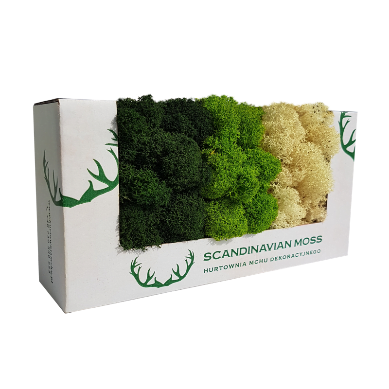 Stabilizowany chrobotek pochodzący z lasów Finlandii. Prezentowany produkt to próbka mchu w trzech wybranych kolorach dostępnych w palecie barw chrobotka od Scandinavian Moss. Zamówienie próbki mchu pozwoli ci sprawdzić jego jakość przed zamówieniem większej ilości. Próbkę możesz wykorzystać także przy tworzeniu niewielkich dekoracji. Istnieje możliwość dopasowania kolorów i stworzenia własnej kompozycji.