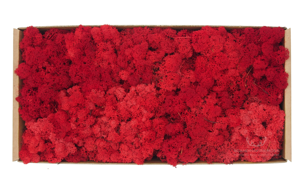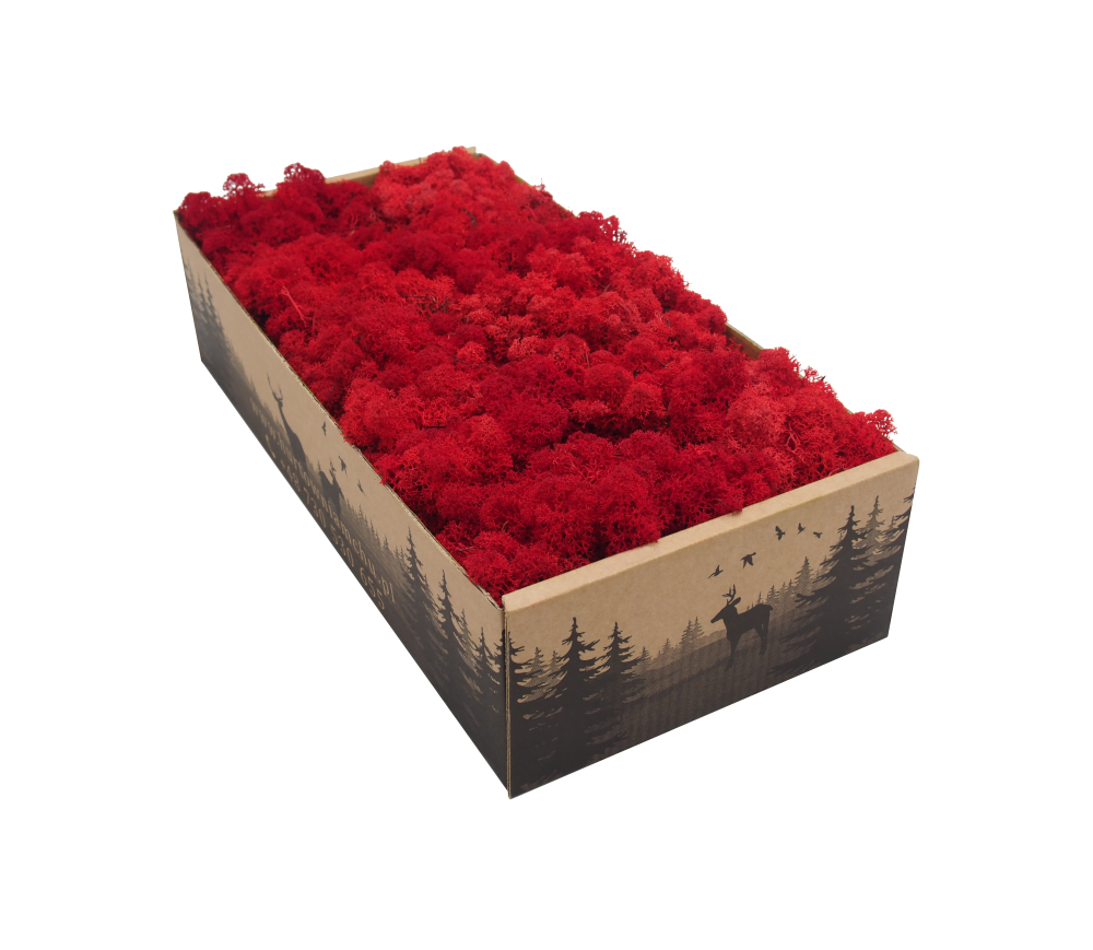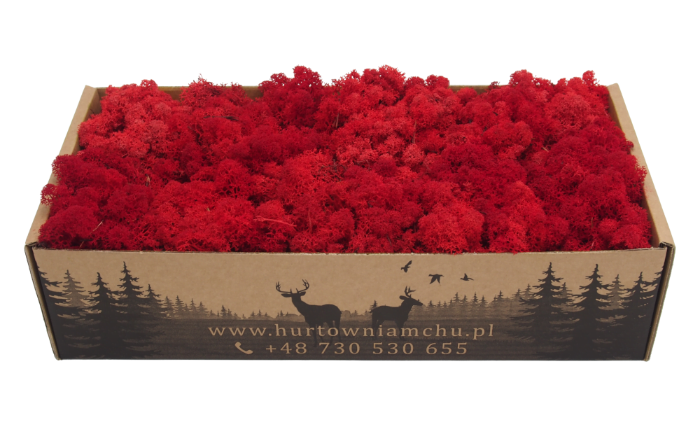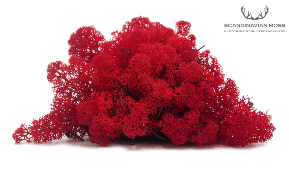 Chrobotek islandzki czerwony (red) ma intensywne zabarwienie uzyskane organicznymi barwnikami o wysokiej zawartości jakościowego pigmentu. Czerwony porost Reindeer Moss można wykorzystać przy tworzeniu dekoracji sezonowych oraz kolorowych logotypów z mchu.