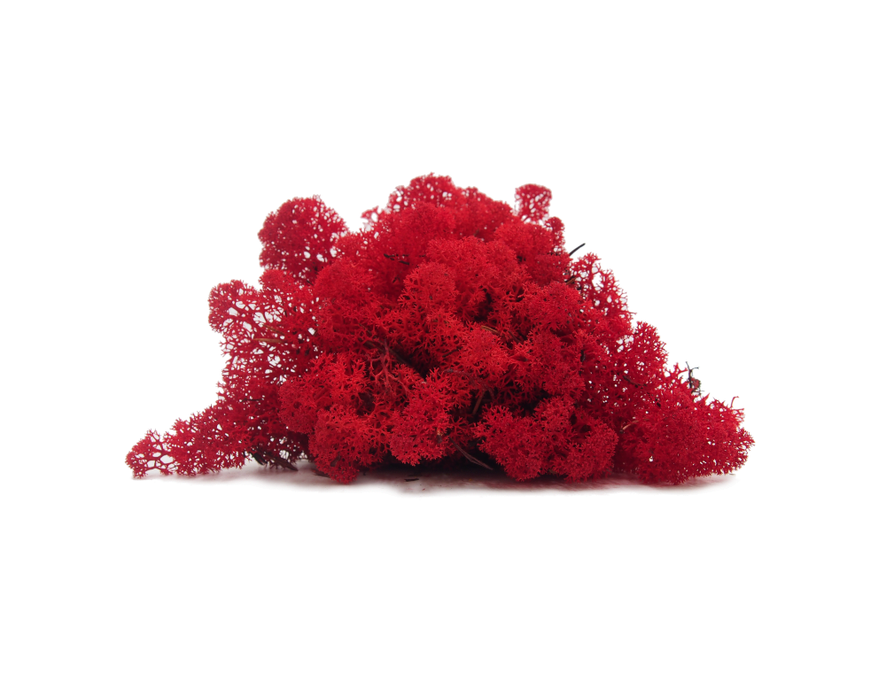 Chrobotek islandzki czerwony (red) ma intensywne zabarwienie uzyskane organicznymi barwnikami o wysokiej zawartości jakościowego pigmentu. Czerwony porost Reindeer Moss można wykorzystać przy tworzeniu dekoracji sezonowych oraz kolorowych logotypów z mchu.
