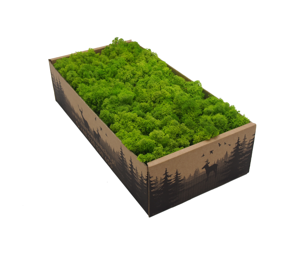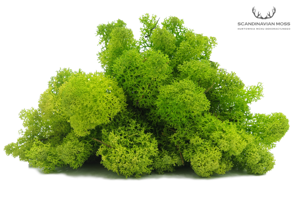 Stabilizowany chrobotek reniferowy dekoracyjny w kolorze wiosennym zielonym (spring green) pochodzący z leśnych terenów Islandii. To produkt nieoczyszczony, co oznacza, że znajduje się w nim igliwie oraz pozostałości leśnej ściółki. Chrobotek islandzki polecany jest przede wszystkim jako naturalny element dekoracji sezonowych, kompozycji florystycznych, stroików i wieńców. Mech stabilizowany przez wiele lat zachowuje swój pierwotny kolor i strukturę. Produkt w 100% naturalnego pochodzenia. Materiał dekoratorski o wysokości od 5 do 7 cm, pakowany luzem. Pojedynczy karton 500 g wystarcza na pokrycie powierzchni ok. 30 x 35 cm.
