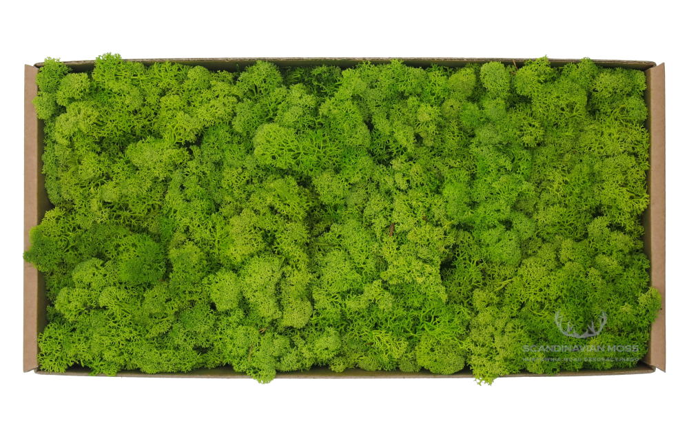 Ze względu na łatwość aplikacji chrobotek reniferowy powszechnie wykorzystuje się w aranżacji wnętrz, florystyce i dekoratorstwie. Chrobotek islandzki spring green świetnie pasuje do kompozycji z takimi produktami od Scandinavian Moss, jak mech płaski oraz mech poduszkowy.