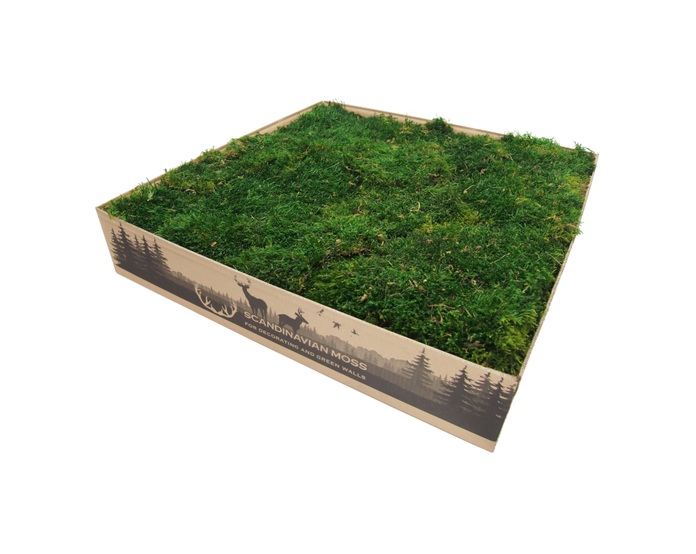 Stabilizowany mech płaski ciemnozielony od Scandinavian Moss. Bywa nazywany mchem górskim, trawiastym i mchem leśnym. Najczęściej stosowany jako wypełniacz lub tło. Mech stabilizowany przez wiele lat zachowuje swój pierwotny kolor i strukturę. W 100% naturalnego pochodzenia. Materiał dekoratorski o wysokości do 2 cm, pakowany w płatach, w karton 4-5 warstwowy. Pojedynczy karton wystarcza na pokrycie ok. 1 m².