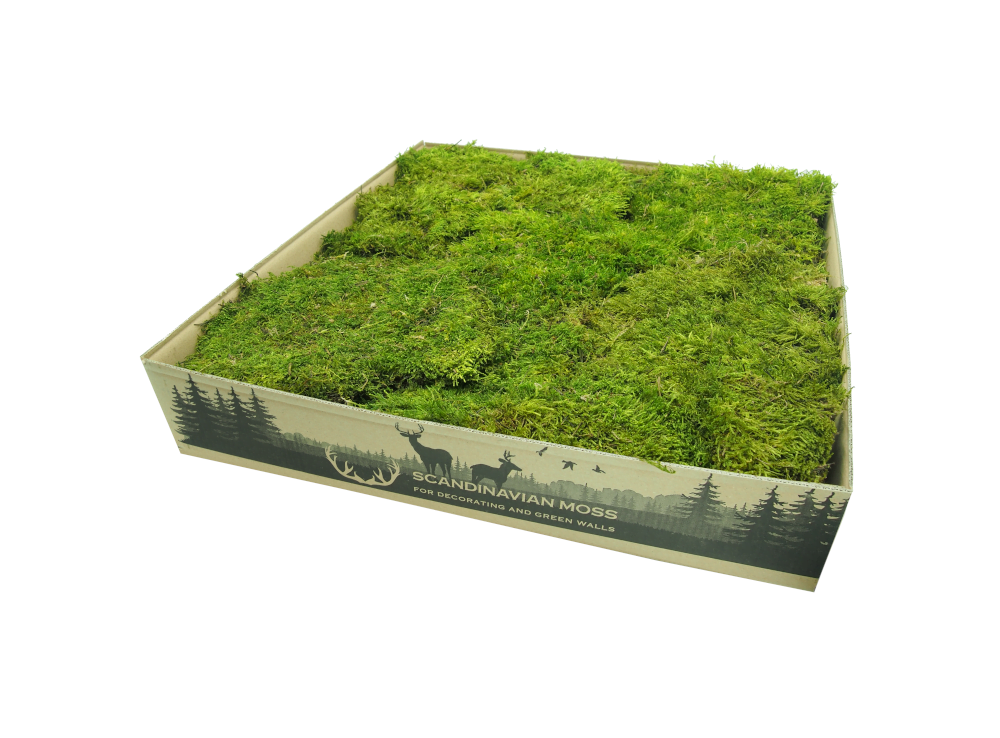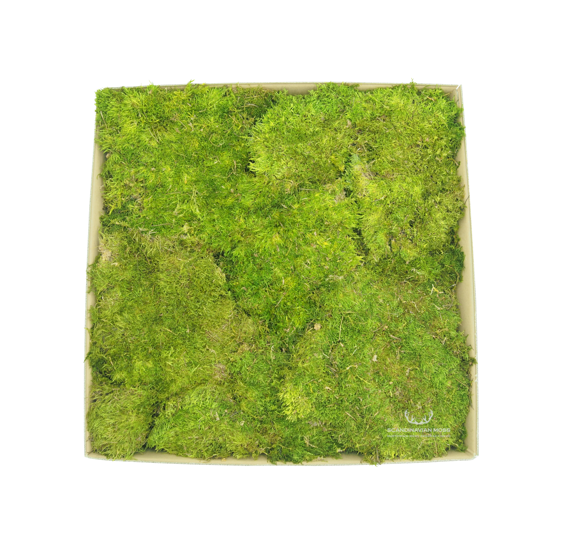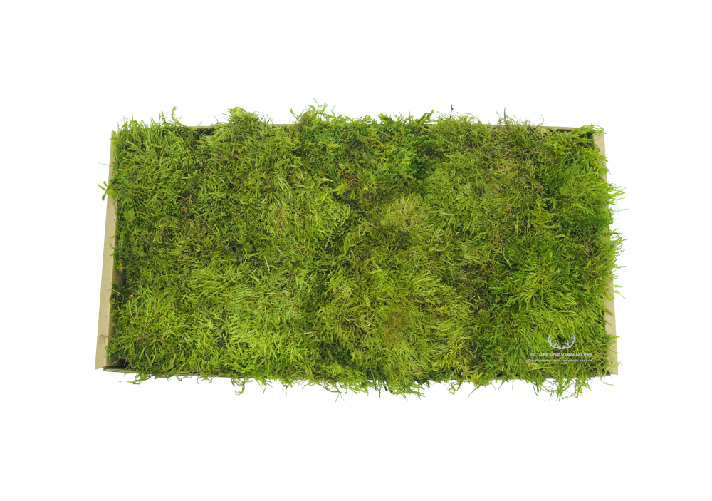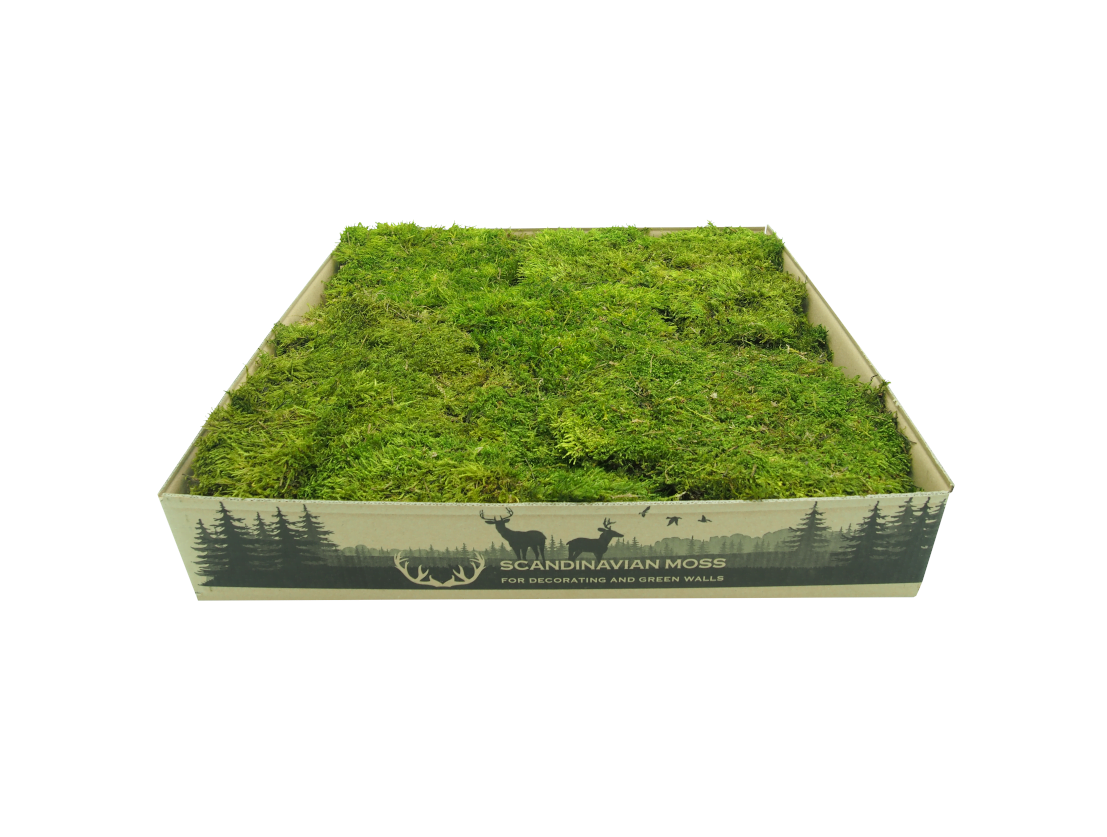 Stabilizowany mech płaski jasnozielony od Scandinavian Moss. Bywa nazywany mchem górskim, trawiastym i mchem leśnym. Najczęściej stosowany jako wypełniacz lub tło. Mech stabilizowany przez wiele lat zachowuje swój pierwotny kolor i strukturę. W 100% naturalnego pochodzenia. Materiał dekoratorski o wysokości do 2 cm, pakowany w płatach, w karton 4-5 warstwowy. Pojedynczy karton wystarcza na pokrycie ok. 1 m².