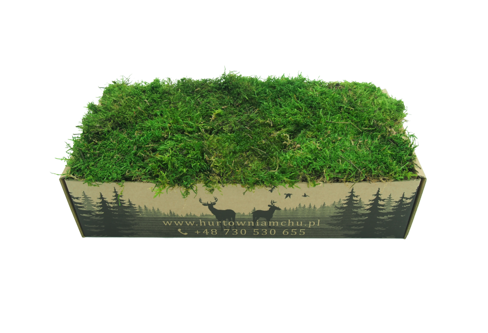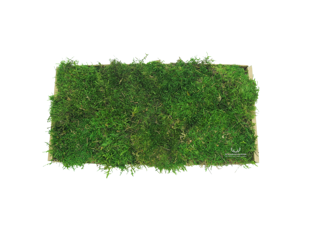 Stabilizowany mech płaski średniozielony pochodzący z lasów Skandynawii. Znany także jako mech górski, trawiasty i mech leśny. Najczęściej stosowany jako wypełniacz lub tło. Mech stabilizowany przez wiele lat zachowuje swój pierwotny kolor i strukturę. W 100% naturalnego pochodzenia. Materiał dekoratorski o wysokości do 2 cm, pakowany w płatach, w karton 2-3 warstwowy. Pojedynczy karton wystarcza na pokrycie ok. 0,2 m².