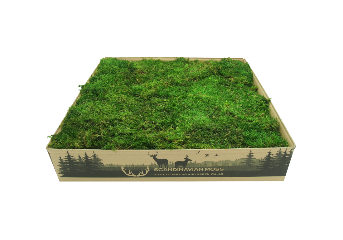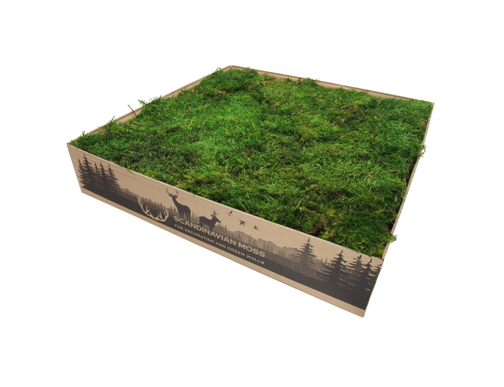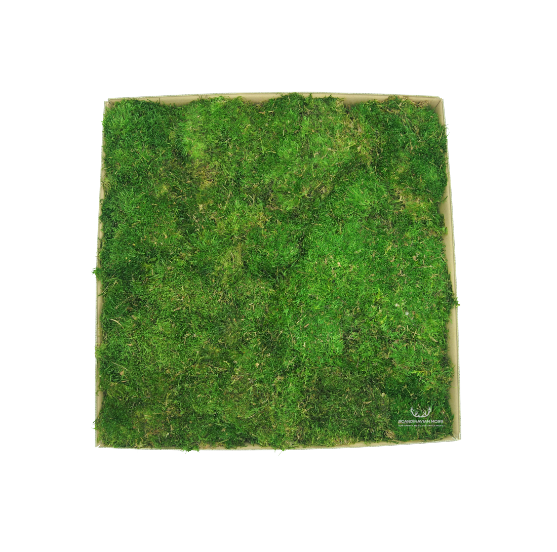 Stabilizowany mech płaski średniozielony od Scandinavian Moss. Bywa nazywany mchem górskim, trawiastym i mchem leśnym. Najczęściej stosowany jako wypełniacz lub tło. Mech stabilizowany przez wiele lat zachowuje swój pierwotny kolor i strukturę. W 100% naturalnego pochodzenia. Materiał dekoratorski o wysokości do 2 cm, pakowany w płatach, w karton 4-5 warstwowy. Pojedynczy karton wystarcza na pokrycie ok. 1 m².