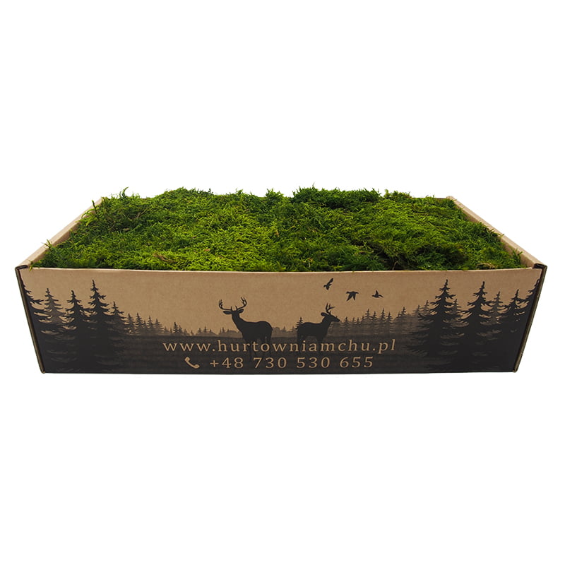 Stabilizowany mech płaski jasny zielony pochodzący z terenów Szwecji. Bywa nazywany mchem górskim, trawiastym i mchem leśnym. Najczęściej stosowany jako wypełniacz lub tło. Mech stabilizowany przez wiele lat zachowuje swój pierwotny kolor i strukturę. W 100% naturalnego pochodzenia. Materiał dekoratorski o wysokości do 2 cm, pakowany w płatach, w karton 2-3 warstwowy. Pojedynczy karton wystarcza na pokrycie ok. 0,2 m².