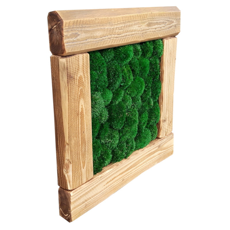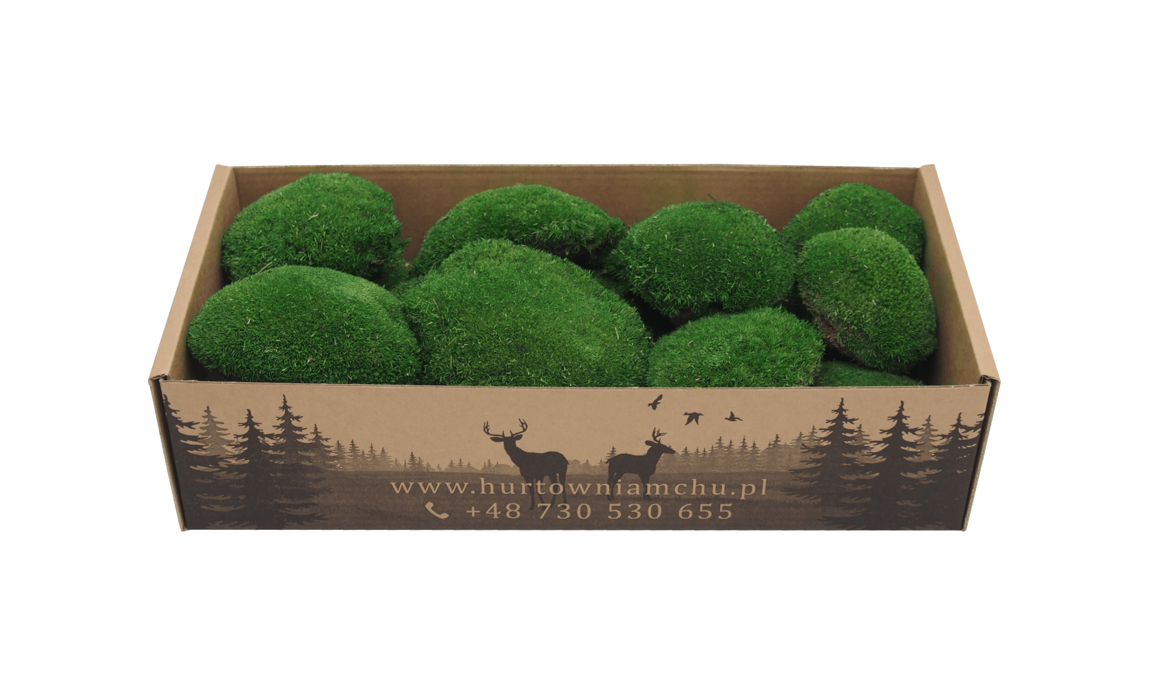 Preparowany mech poduszkowy ciemny zielony pochodzący z terenów Szwecji. Jego inne popularne nazwy to: mech okrągły, gąbczasty, mech kulisty (ball moss, pole moss). Najczęściej stosowany przy tworzeniu zielonych ścian i obrazów roślinnych. Mech stabilizowany przez wiele lat zachowuje swój pierwotny kolor i strukturę. W 100% naturalnego pochodzenia. Materiał dekoratorski o wysokości od 2 do 6 cm, pakowany warstwowo. Pojedynczy karton wystarcza na pokrycie powierzchni ok. 33×33 cm (~0,1 m²) – taka sama pow. krycia jak przy 200g poduszki nieobcinanej warstwy korzeniowej