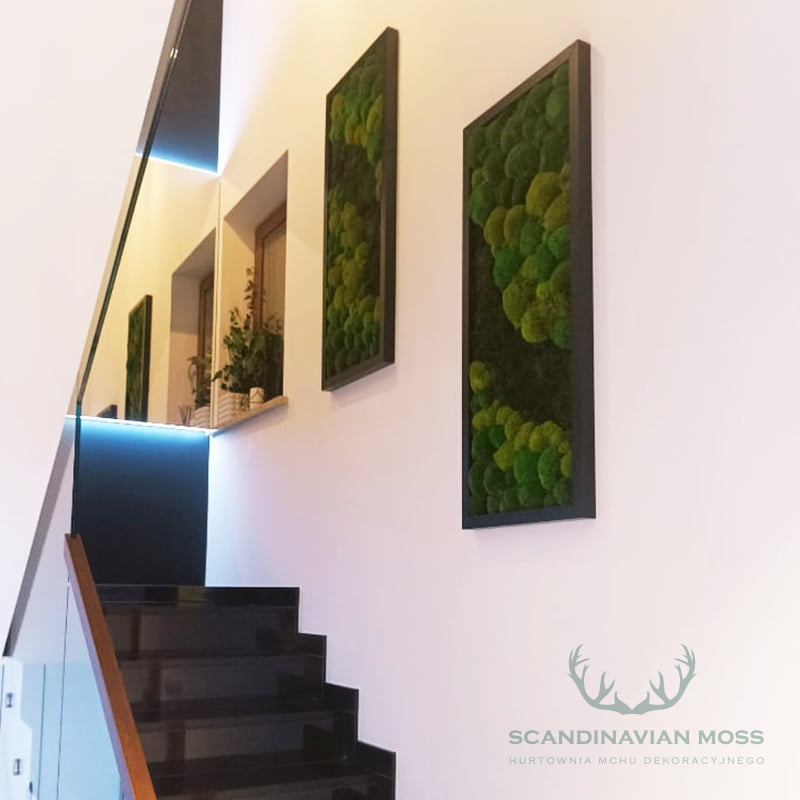 panele akustyczne     Dźwiękochłonny –  mech na ścianie pochłania drgania, eliminuje echo, wygłusza pomieszczenia, dlatego działa niczym panel akustyczny.
