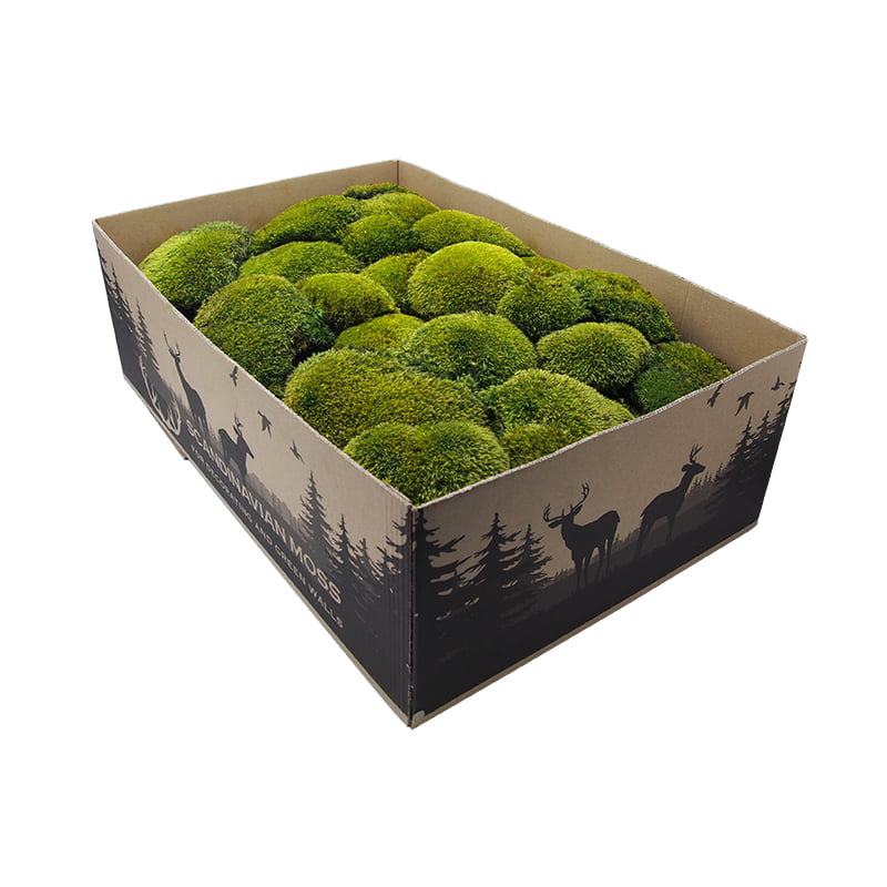 Preparowany mech poduszkowy jasny zielony pochodzący z terenów Skandynawii. Jego inne popularne nazwy to: mech okrągły, gąbczasty, mech kulisty (ball moss, pole moss). Najczęściej stosowany przy tworzeniu zielonych ścian i obrazów roślinnych. Mech stabilizowany przez wiele lat zachowuje swój pierwotny kolor i strukturę. W 100% naturalnego pochodzenia. Materiał dekoratorski o wysokości od 2 do 6 cm, pakowany warstwowo. Pojedynczy karton wystarcza na pokrycie ok. 0,5 m².