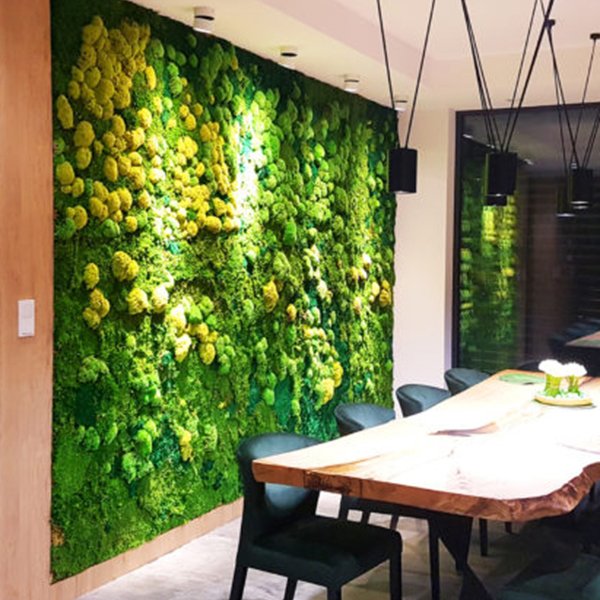 panele akustyczne     Dźwiękochłonny –  mech na ścianie pochłania drgania, eliminuje echo, wygłusza pomieszczenia, dlatego działa niczym panel akustyczny.