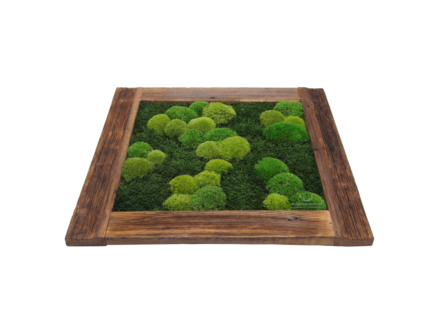 Preparowany mech poduszkowy jasny zielony pochodzący z Turcji. Posiada pełną warstwę korzeniową, jego brzegi są nierówne, bywają ostre. Jego inne popularne nazwy to: mech okrągły, gąbczasty, mech kulisty (ball moss, pole moss). Najczęściej stosowany przy tworzeniu zielonych ścian i obrazów roślinnych. Mech stabilizowany przez wiele lat zachowuje swój pierwotny kolor i strukturę. W 100% naturalnego pochodzenia. Materiał dekoratorski o wysokości od 2 do 6 cm, pakowany warstwowo. Pojedynczy karton wystarcza na pokrycie ok. 30×35 cm (~0,1 m²).
