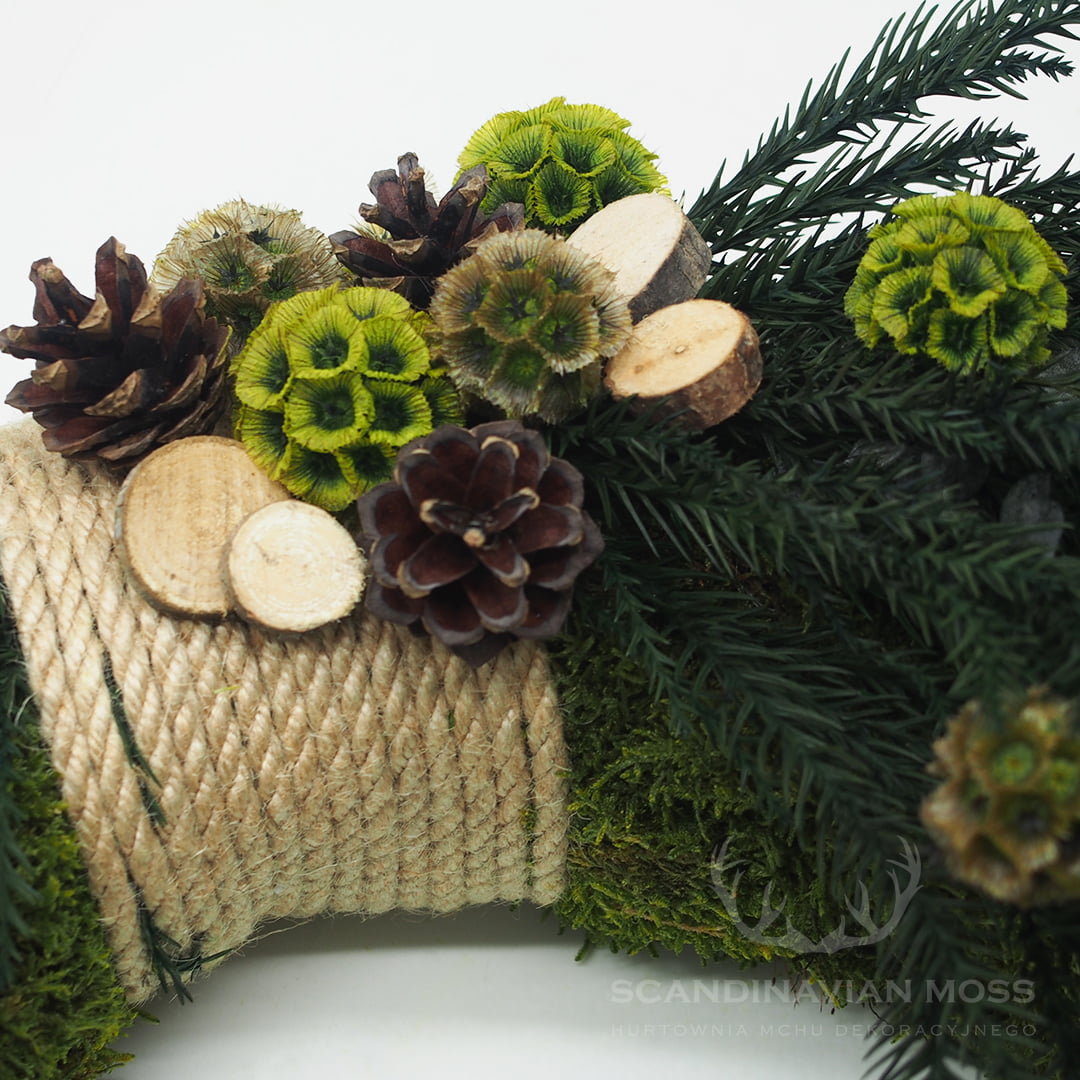 Naturalny wianek bożonarodzeniowy z roślinami stabilizowanymi 40cm