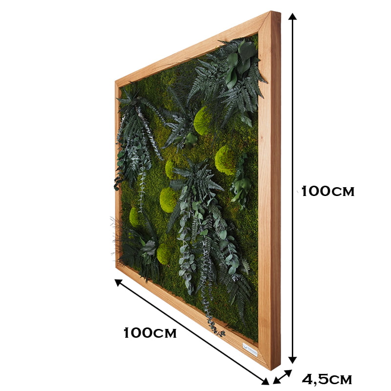 Obraz z mchu i roślin stabilizowanych w ramie dębowej 100x100cm