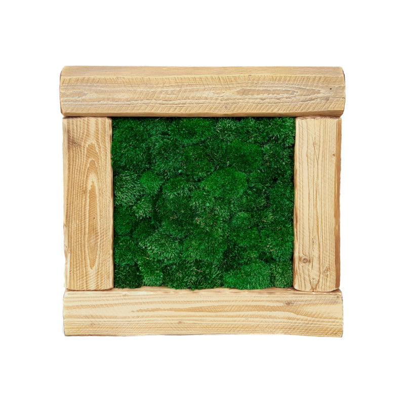 Obraz z mchu poduszkowego ciemnego w ramie ze starego drewna 56x56cm