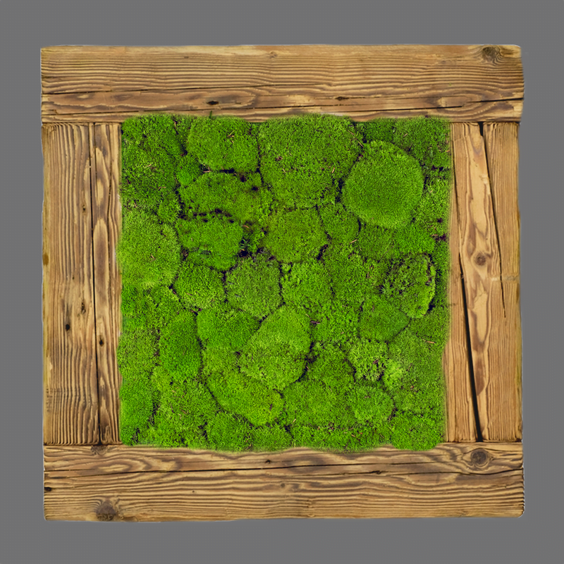 Obraz z mchu poduszkowego jasnego w ramie ze starego drewna 56x56cm