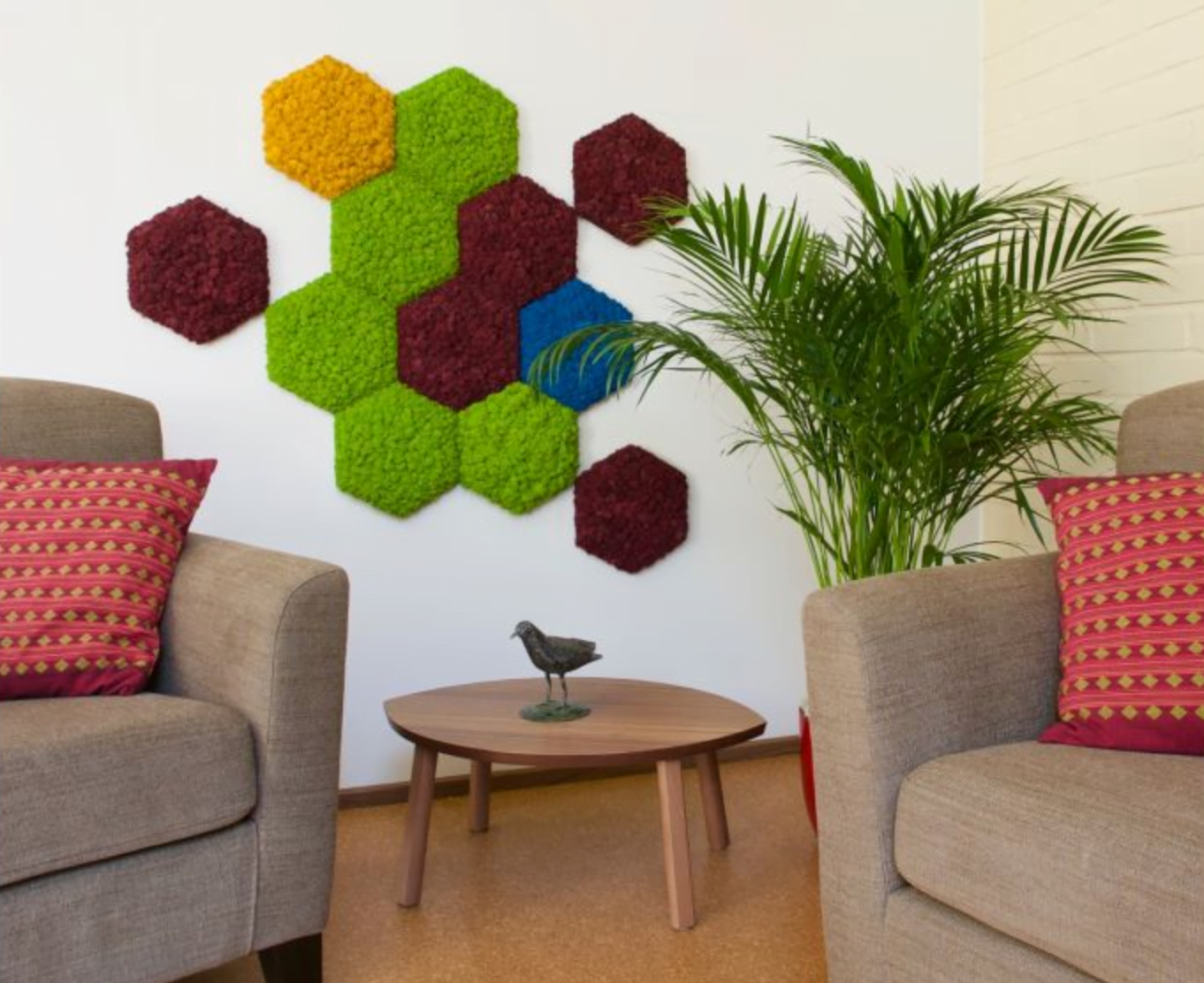Panele ze stabilizowanego chrobotka od Scandinavian Moss to nowatorski sposób na wykończenie ścian i sufitów. Mech preparowany nie wymaga podlewania, pryskania, nawożenia, przycinania ani innych zabiegów pielęgnacyjnych. Panele zaprojektowano w taki sposób, aby można było je ze sobą łączyć, tworząc jednolitą, zieloną powierzchnię o gąbczastej strukturze i nasyconym kolorze.