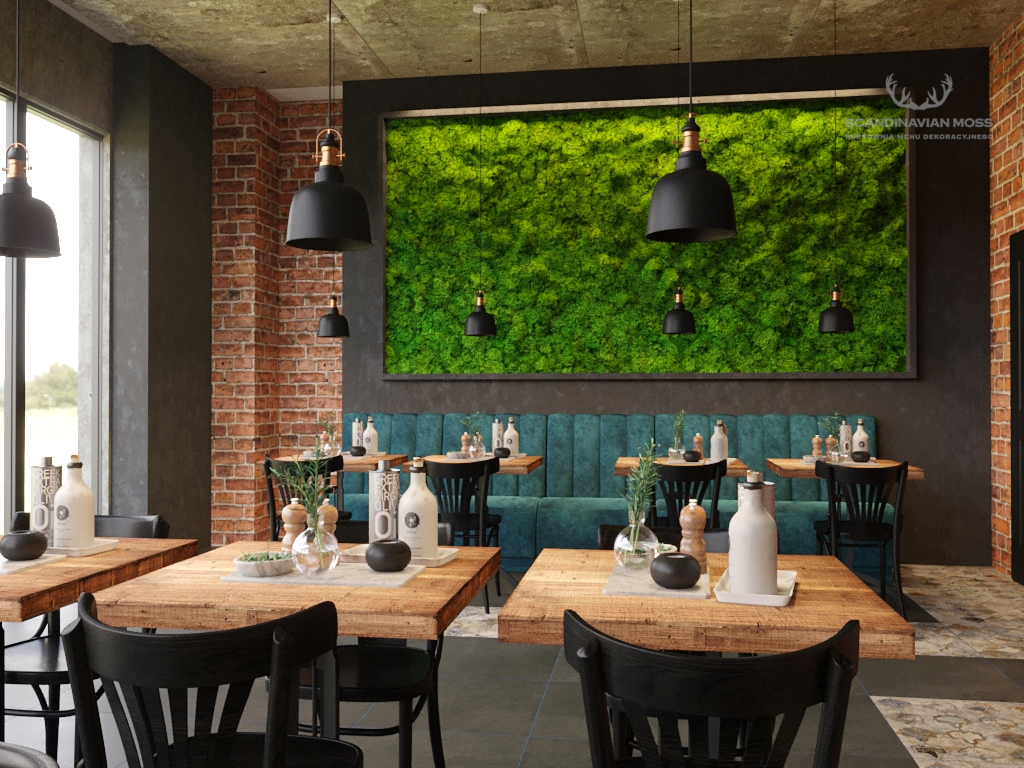 Panel z mchu przeznaczony do samodzielnego montażu na ścianie lub suficie wewnątrz budynku to znakomity sposób, by odmienić wystrój wnętrza. Dekoracja z mchu jest uniwersalna, dlatego pasuje do wnętrz w stylu nowoczesnym, rustykalnym, skandynawskim oraz industrialnym. Imponująco wygląda w towarzystwie elementów z cegły, betonu architektonicznego, szkła, stali, ozdobnego kamienia i drewna.