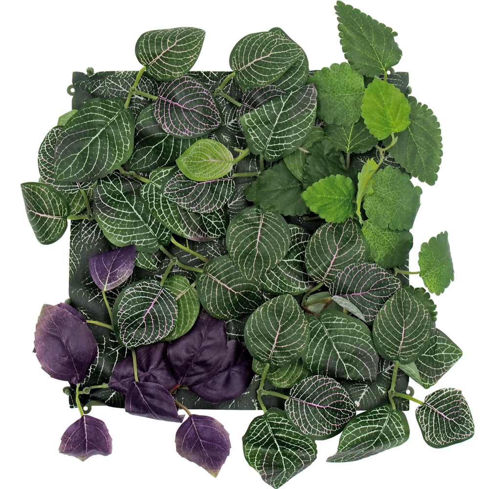 Moduł 25x25cm do stworzenia żywopłotu ze sztucznych roślin liściastych, idealnie imitujący naturalny bluszcz. Moduły, można w łatwy sposób łączyć ze sobą, tworząc tzw. zieloną ścianę, dzięki specjalnie przygotowanym zatrzaskom. Żywopłot idealnie sprawdzi się jako dekoracja balkonu, płotów, tarasu czy elewacji.