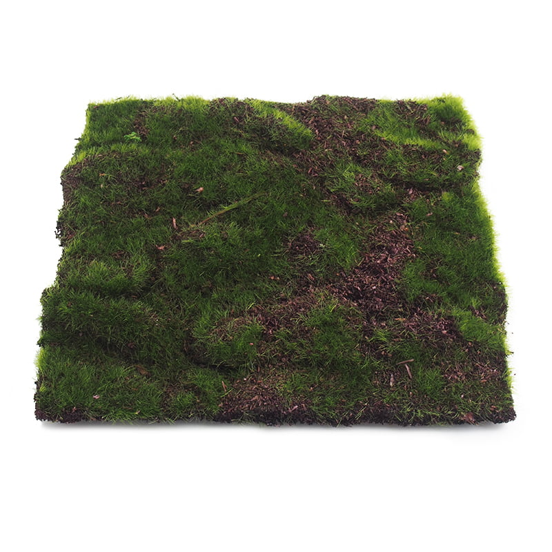 Mech sztuczny zamocowano na miękkim podłożu w brązowym kolorze przypominającym leśną ściółkę. Podłoże po jednej stronie pokryte jest miękkim, syntetycznym mchem w odcieniu średniej zieleni. Ozdoba ma nieregularną powierzchnię, więc prezentuje się bardzo autentycznie. Jest plastyczna i podatna na formowanie, dlatego z łatwością nadasz jej dowolny kształt lub przytniesz do pożądanych wymiarów. Możesz zastosować pojedynczy podkład z mchem lub połączyć ze sobą kilka kawałków, by pokryć większą powierzchnię. Ten produkt dobrze komponuje się z innymi dekoracjami zewnętrznymi od Scandinavian Moss.