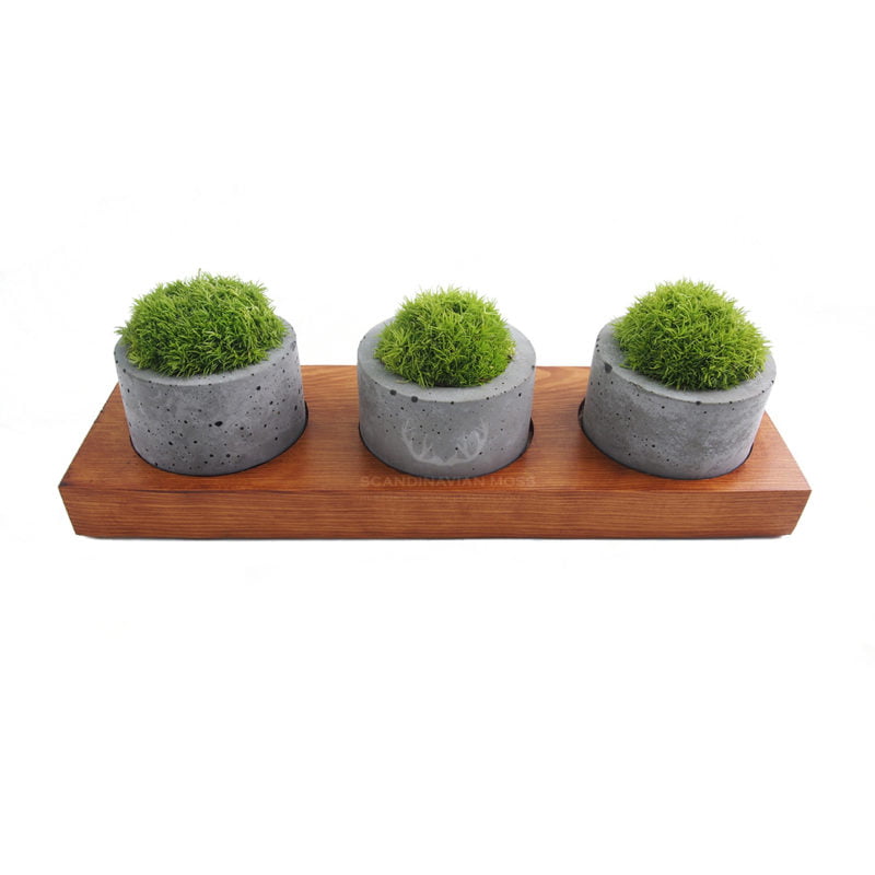 Potrójna doniczka betonowa z mchem poduszkowym jasnozielonym
