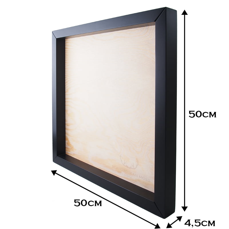 Ekologiczna rama wykonana z prawdziwego drewna olchowego o wymiarach 50×50 centymetrów. Prezentowana ramka drewniana czarna doskonale nadaje się do tworzenia dekoracji z chrobotkiem lub innego rodzaju rękodzieła. Szybki i prosty montaż na ścianie bądź dowolnej płaskiej powierzchni.