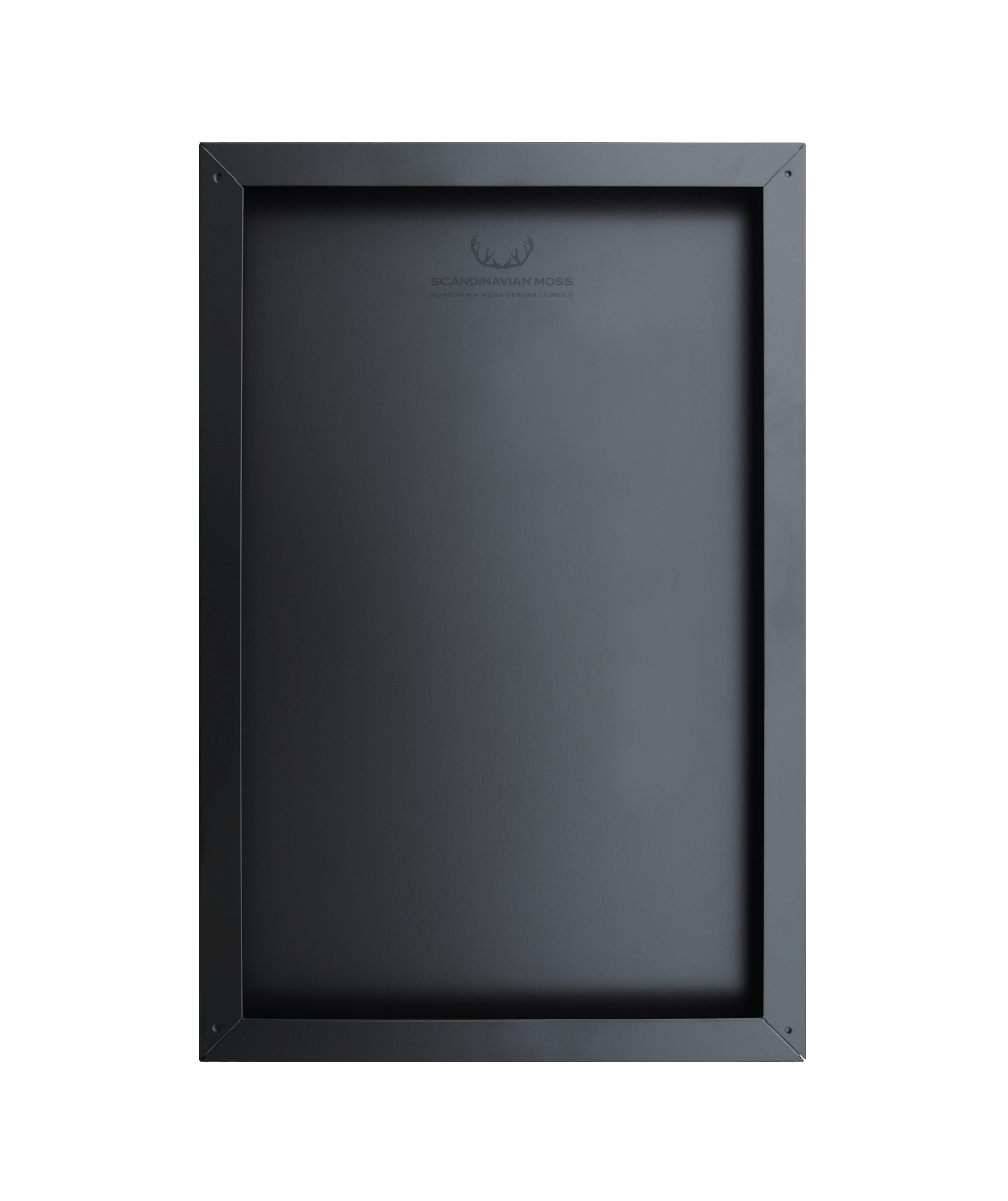 Prezentowaną ramkę wykonano z metalu, dlatego jest trwała i odporna na uszkodzenia mechaniczne. Ramę pomalowano na kolor czarny, co nadaje jej loftowego charakteru. Elementy dekoracyjne z metalu to jeden z najmodniejszych trendów we współczesnej aranżacji wnętrz. Metal jest ponadczasowy, dlatego doskonale wpisuje się w stylistykę nowoczesną i minimalistyczną. Dekoracja z naturalnego mchu stabilizowanego będzie tworzyła ciekawy kontrast z metalową ramą.