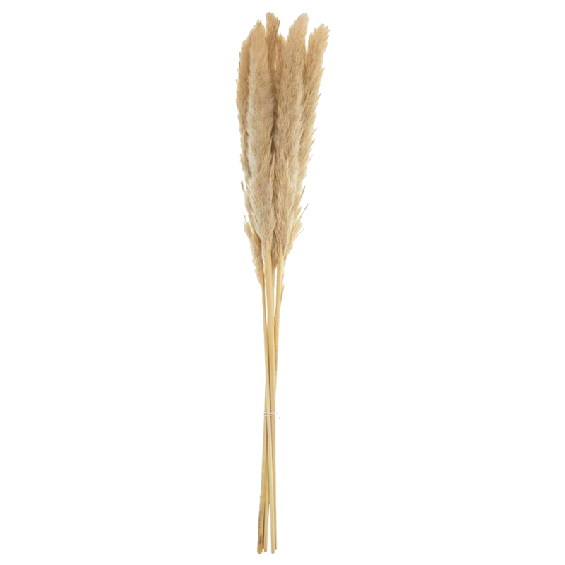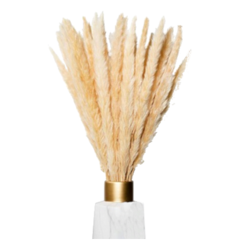 Suszona trawa pampasowa, zwana potocznie pampasem lub kortaderią to charakterystyczna roślina z przyciągającymi wzrok kwiatostanami. Na sztywnych łodyżkach wyrastają puszyste, pierzaste wiechy. Kwiatostany trawy pampasowej często nazywane są pióropuszami. Zebrane w gromadę zapewniają wspaniałe wrażenia wizualne. Prezentowana trawa pampasowa ma naturalną, kremową barwę.