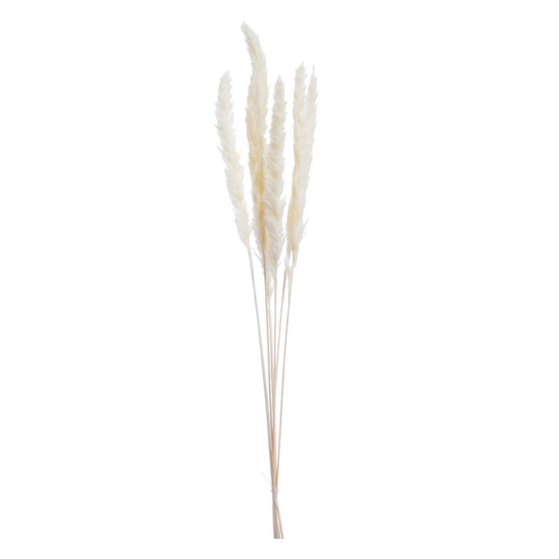 Suszona trawa pampasowa (Cortaderia selloana) to jeden z najbardziej okazałych gatunków traw. Pochodzi ze stepów Ameryki Południowej, z regionu Pampas, skąd też wzięła swoją nazwę. Wyróżnia się niezwykle dekoracyjnymi, rozłożystymi kwiatostanami. Jej delikatny charakter doskonale pasuje do wnętrz w stylu rustykalnym i boho. Wspaniale prezentuje się zarówno w kompozycji z innymi roślinami, jak również jako samodzielna dekoracja w wazonie.